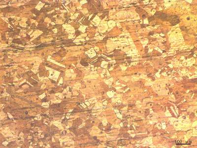 送檢H90帶材試樣兩批,批號分別為9083002和9083005,規(guī)格均為0.2mm,狀態(tài)均為M,要求高倍組織分析。
